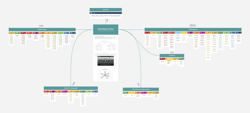 One of the most interesting outcomes of the Initiative is the mind map of projects and enterprises working on sustainability in Dresden. Compiled in a Whiteboarding Programme (Miro) it provides links to projects and businesses in relation to the 17 SDGs.
