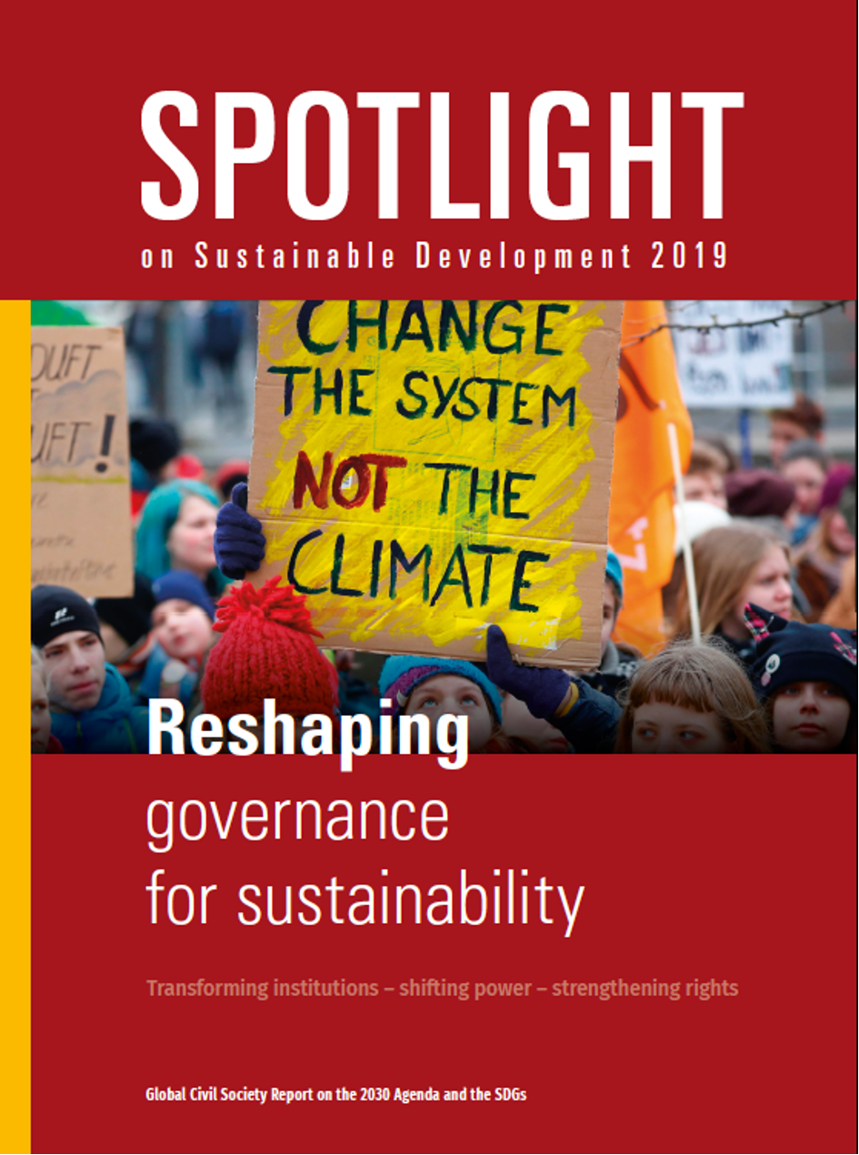 The Spotlight Reports addresses some subjects similar to the policy paper of the German Council for Sustainable Development: No policy coherence without governance coherence; the need to overcome the weakness of the HLPF. It also adds own positions including the need for a revitalizing of global norm-setting, rejecting corporate voluntarism and the statement that democratic governance requires democratic funding and that the UN should "translate the calls of the emerging global movements for social and environmental justice into political steps towards a new democratic multilateralism." Please read the full report on findings of civil society reports and findings on global governance of sustainable development.