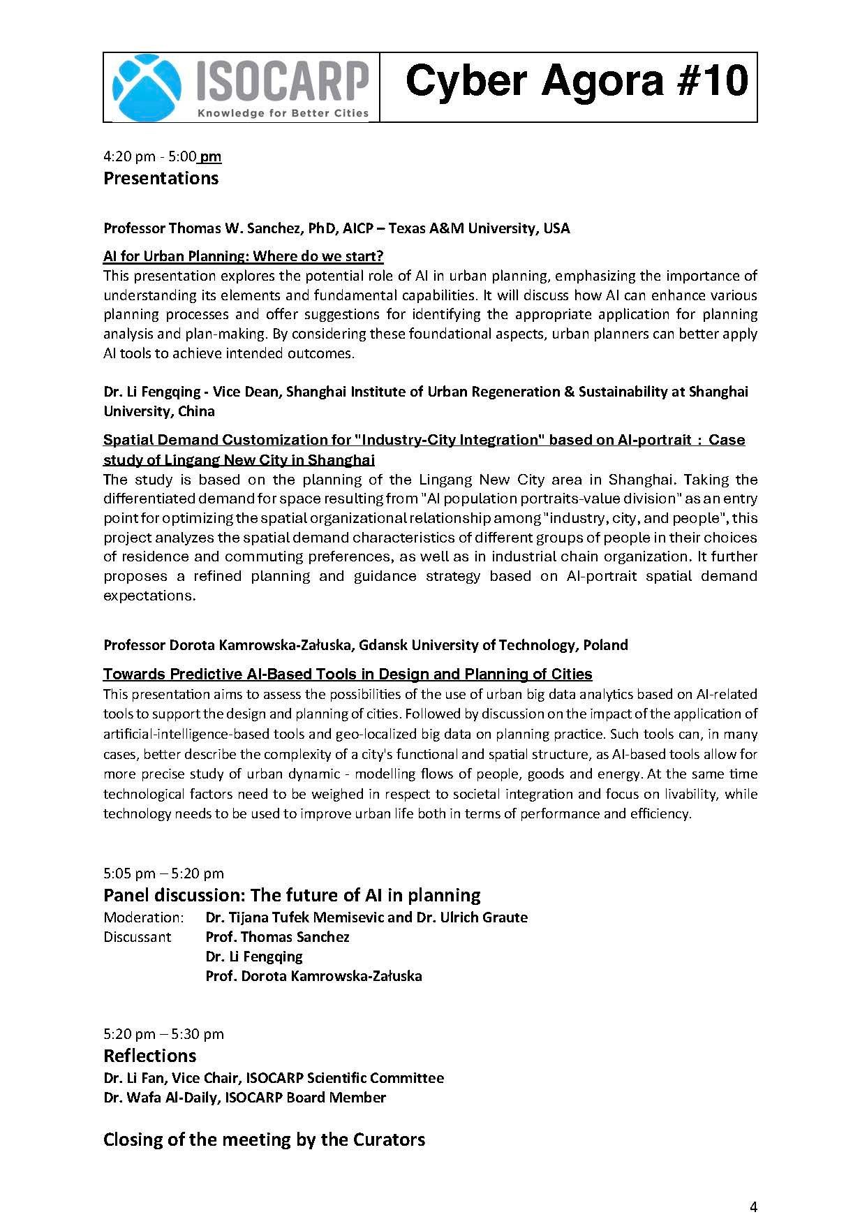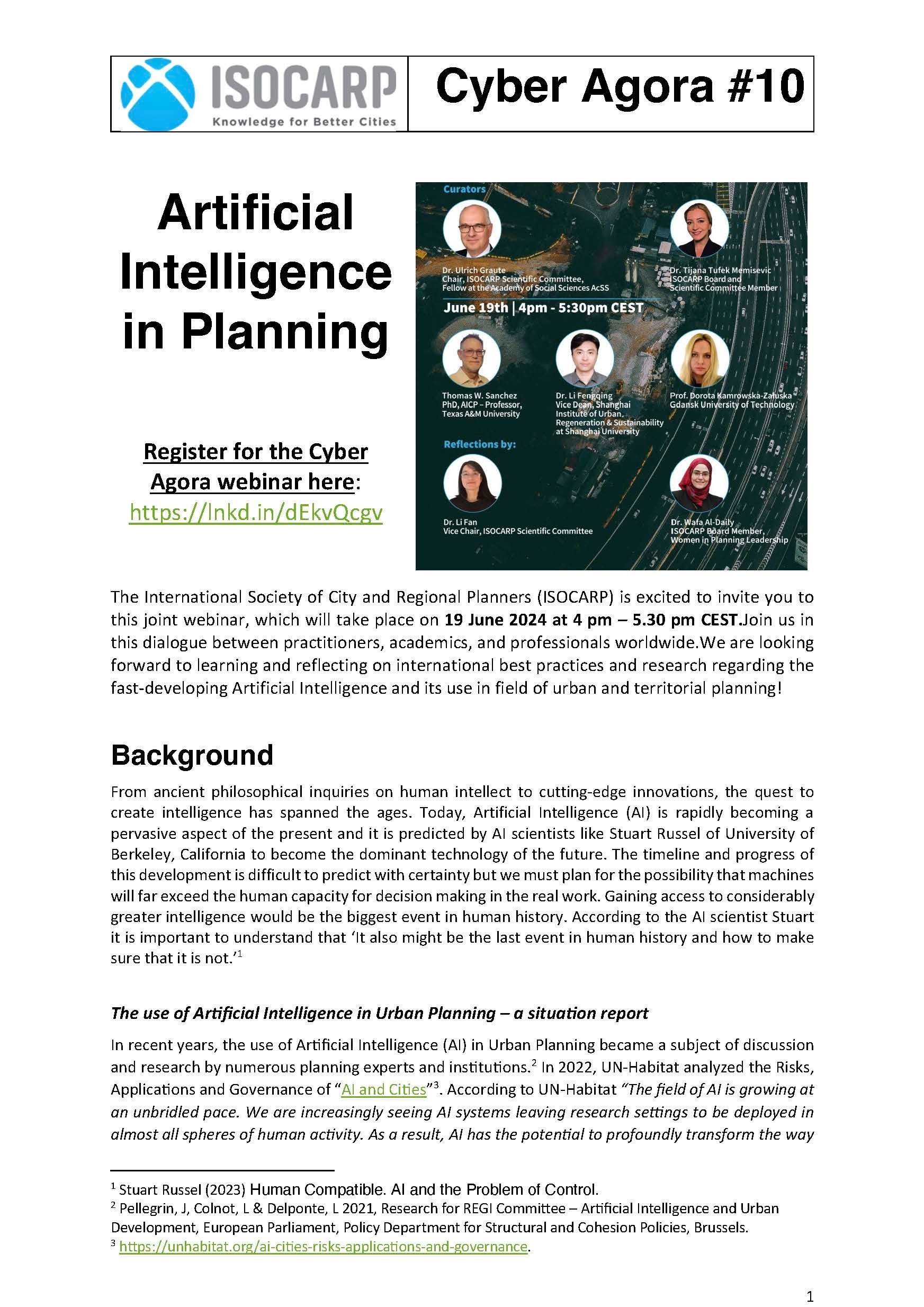 The recording of ISOCARP's Cyber Agora: Artificial Intelligence in Planning is now available on youtube